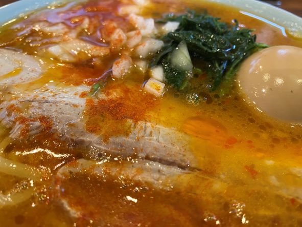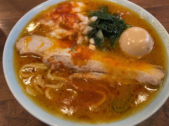 チャーシュー・玉ねぎ・ほうれん草に味玉トッピングです