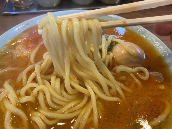 もちもちとした中太麺、硬さは普通でお願いをすると少し柔らかくて好きです♪