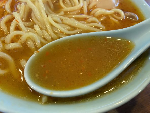 熱々のスープを一口飲むと豚骨の美味しさの中から辛さがじわじわと