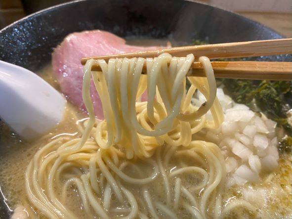 平細麺、シコシコ&ツルっとした食感で小麦麺を楽しめます(^○^)